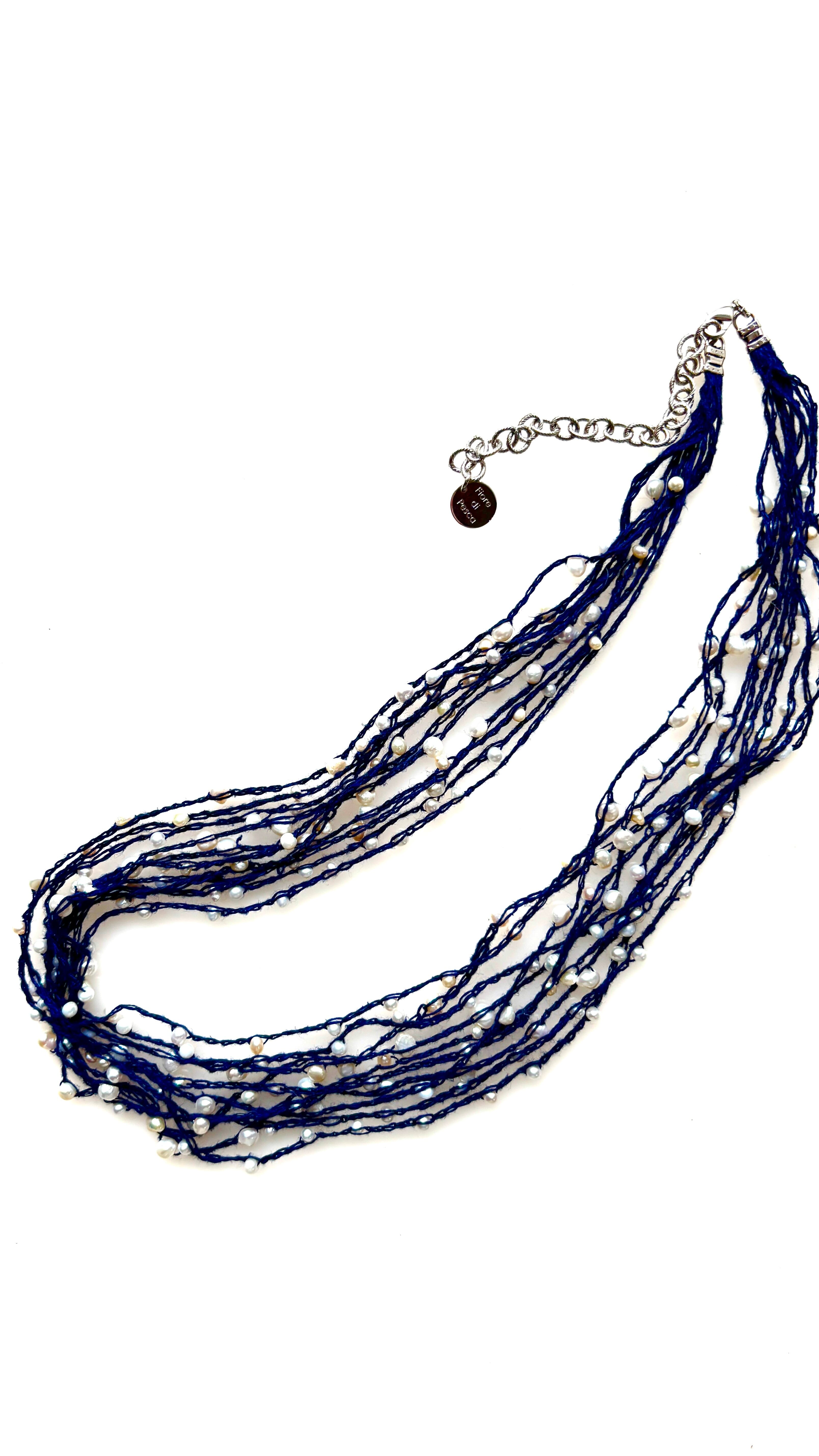 一本一本石をすくいながらかぎ針で鎖編にしたものを