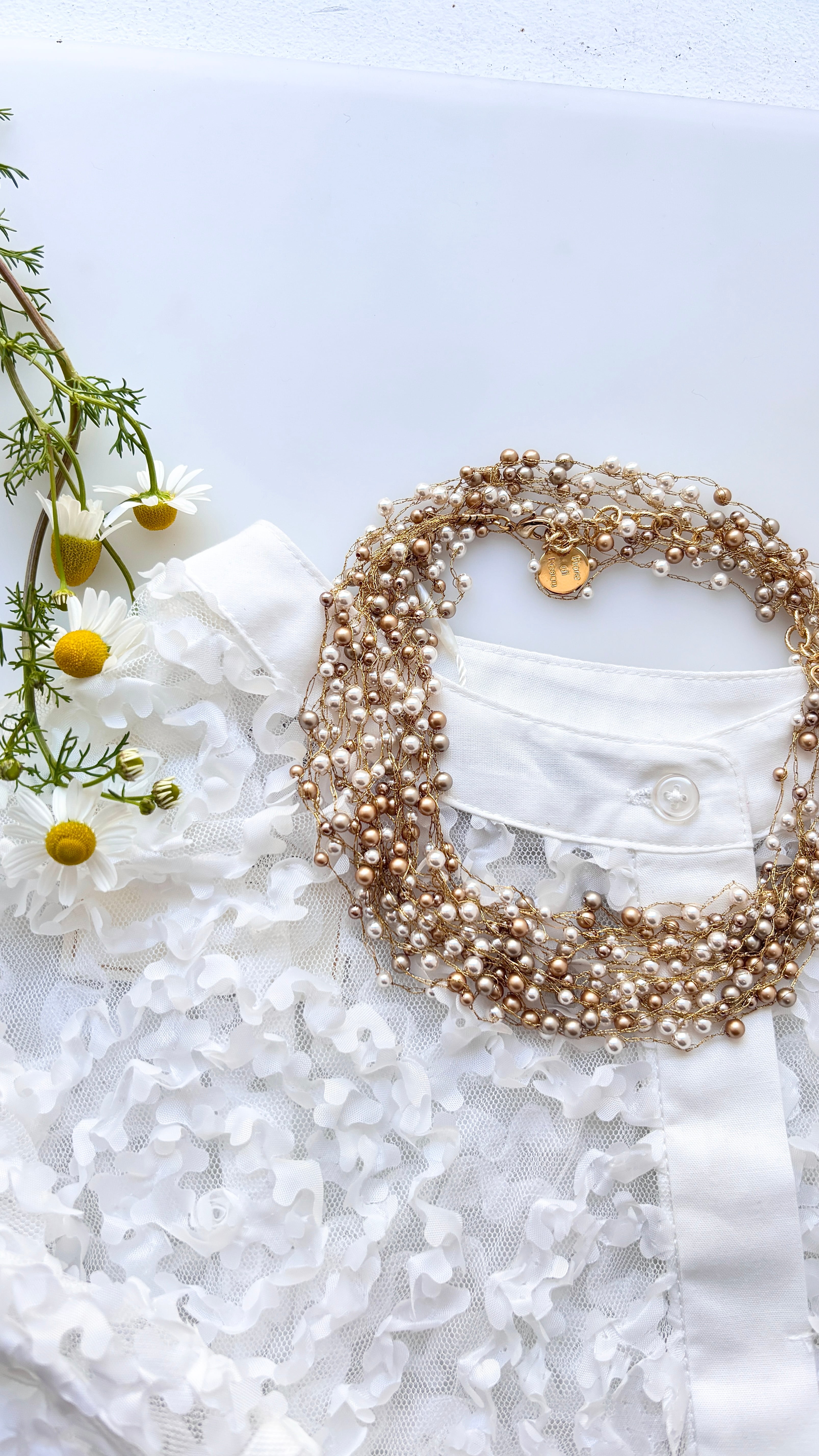 『クロシェ ロングネックレス(パール・ゴールドフィラガン/約70cm)』