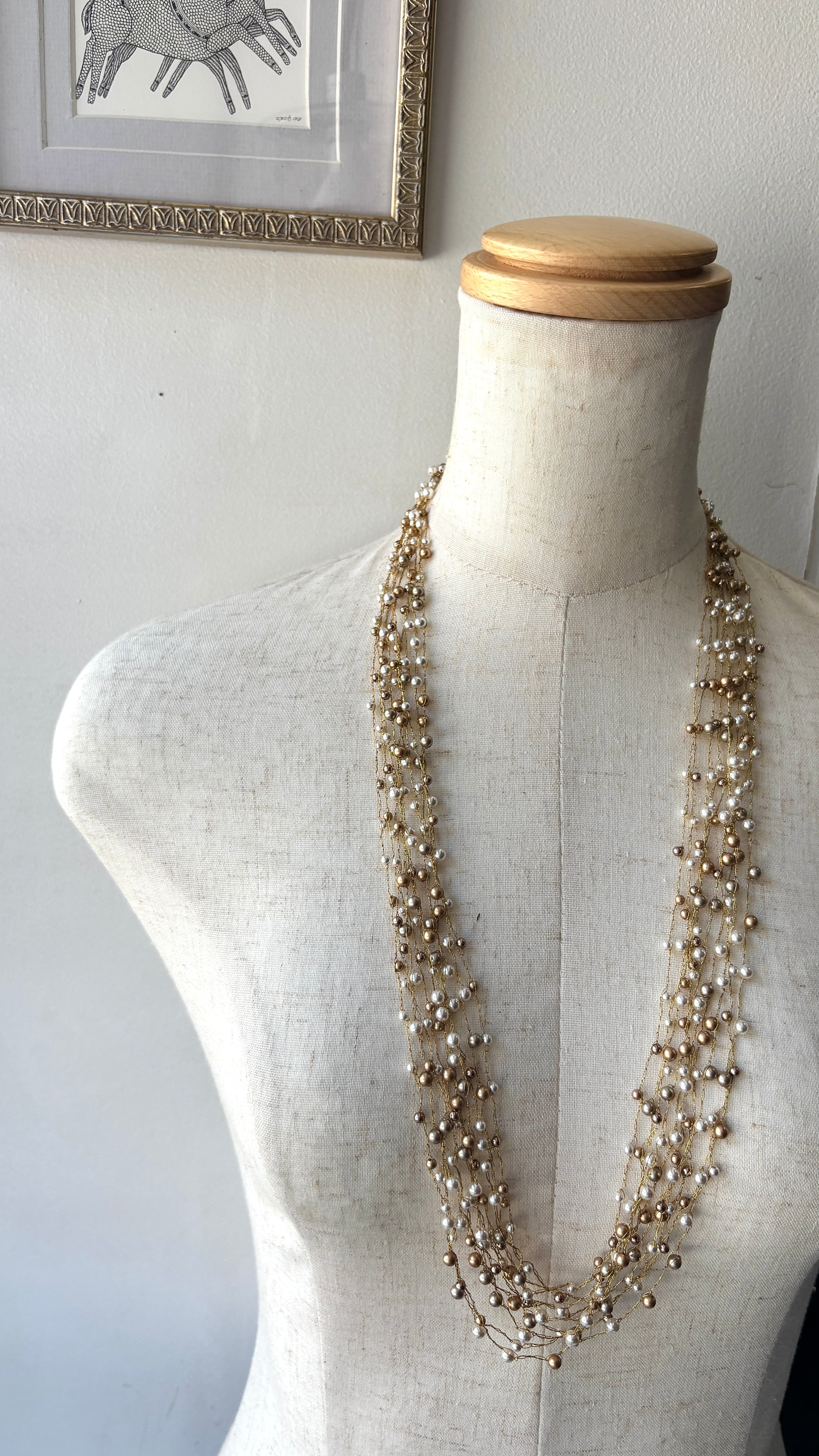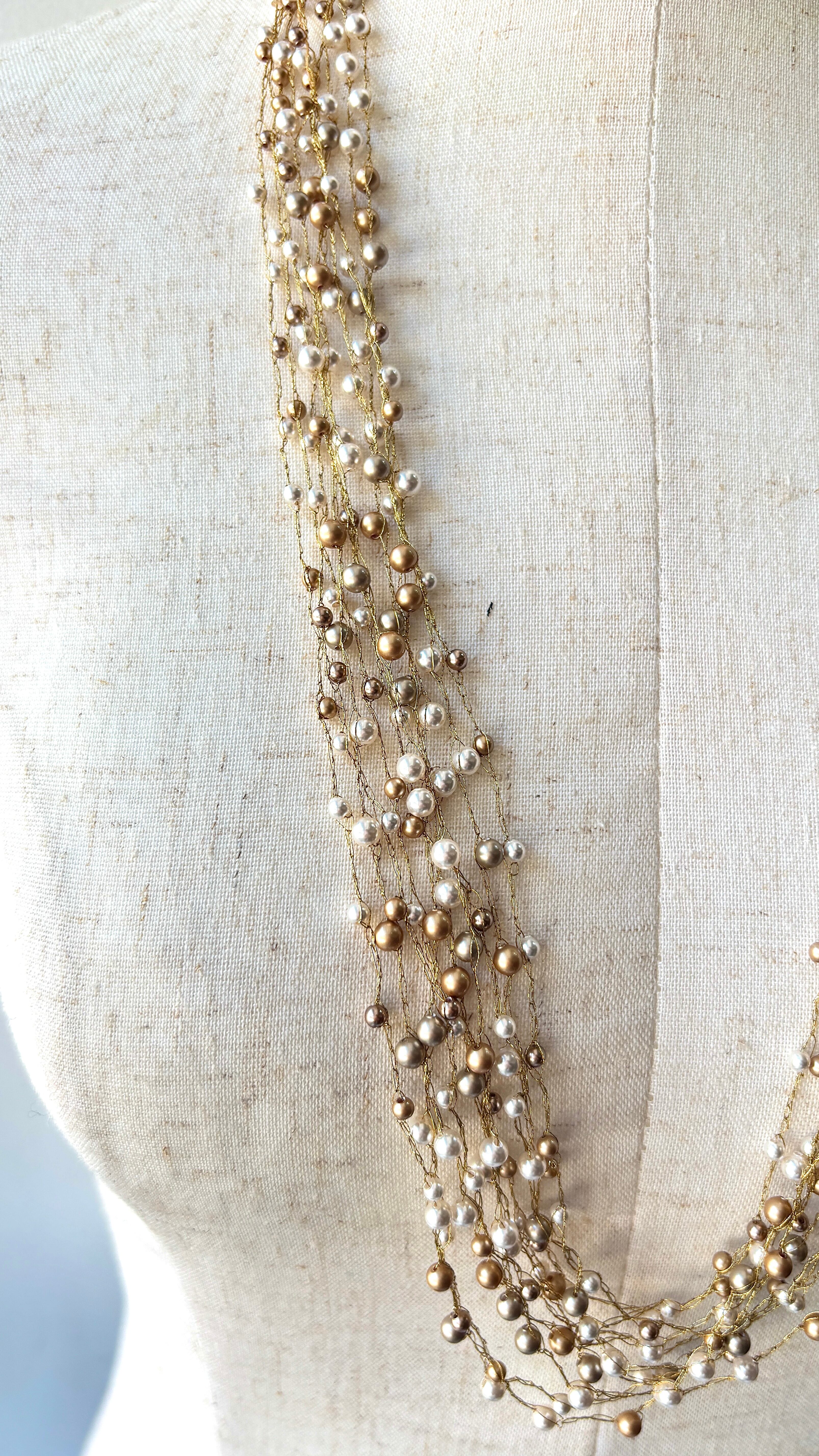 【クロシェ ロングネックレス(パール・ゴールドフィラガン/約70cm)】